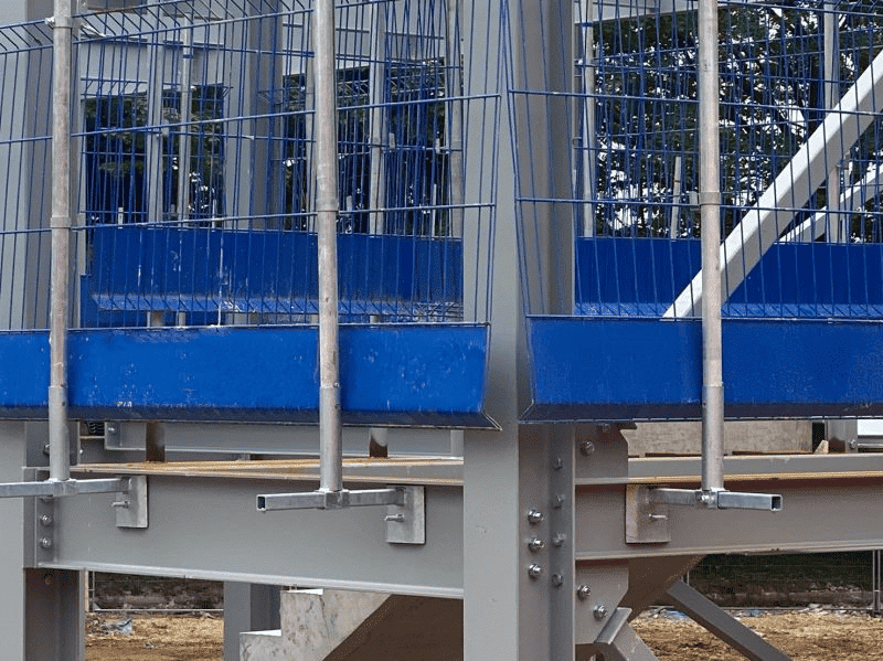 Stairs are common walking surfaces on construction sites; our socket‑base stairway edge protection system keeps workers safe while using stairs.