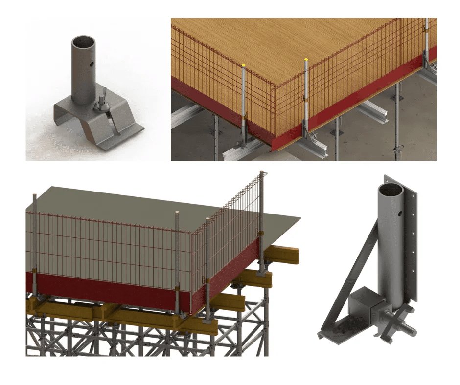 تتضمن حماية حافة القوالب تركيب حاجز على العارضة. يتم تركيب هذه الحواجز على عوارض أولية أو ثانوية. أنها تحمي العمال من السقوط أثناء صب الخرسانة. تظل الكائنات أيضًا آمنة من قطرات الارتفاع.