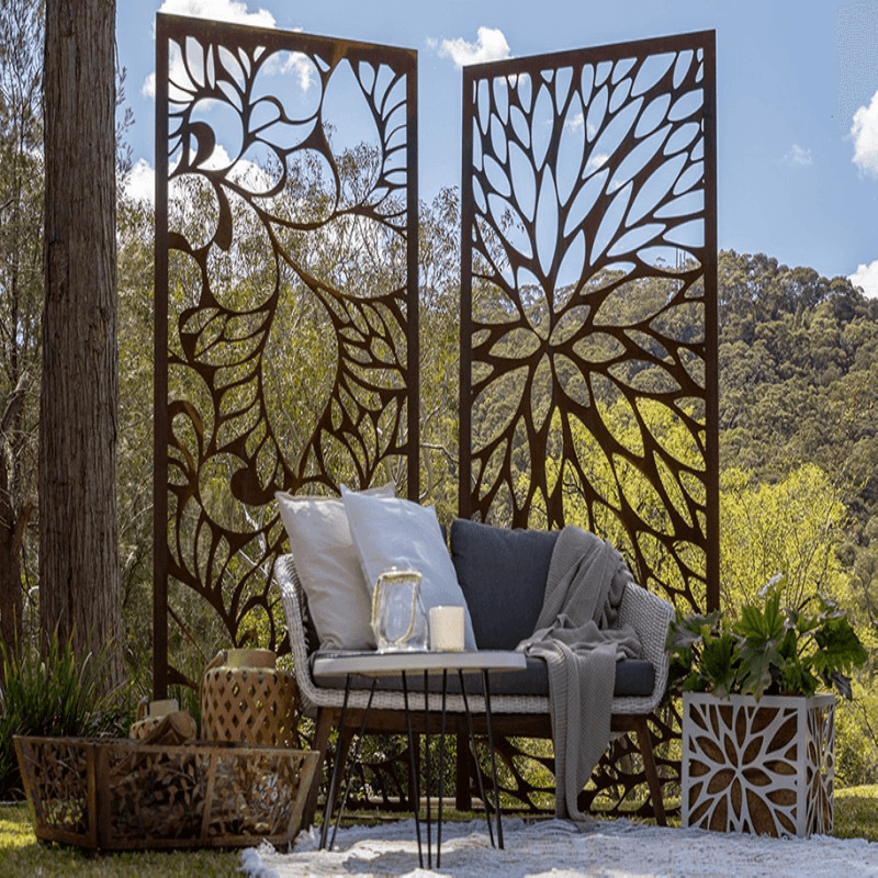 يمكن للألواح المعدنية المقطوعة بالليزر أن تعزز السمات المستوحاة من الطبيعة بشكل جميل. تعتبر أنماط الأزهار الرقيقة خيارًا شائعًا. تعمل تصميمات فروع الأشجار المعقدة أيضًا بشكل جيد. تضفي هذه العناصر إحساسًا عضويًا خارجيًا على منطقتك.