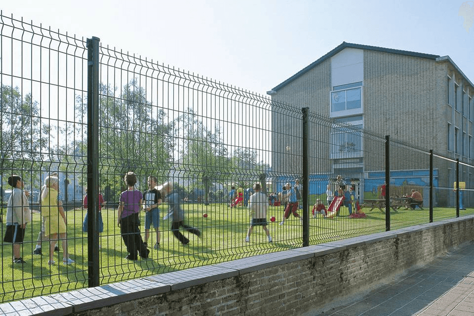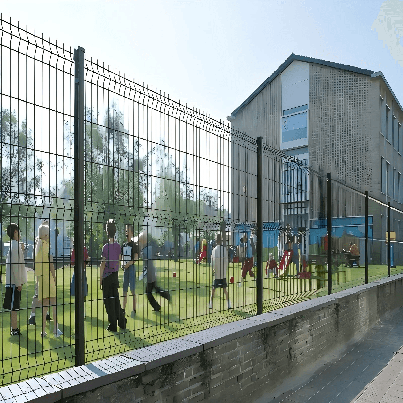 This 3D welded wire mesh features V-shaped bending curves. Curves increase anti-climb performance and visual appeal. It blocks unauthorized persons from entering school grounds. The fence also prevents students from leaving without permission. This keeps students safe throughout the school day. Additionally, it protects school facilities from potential damage.