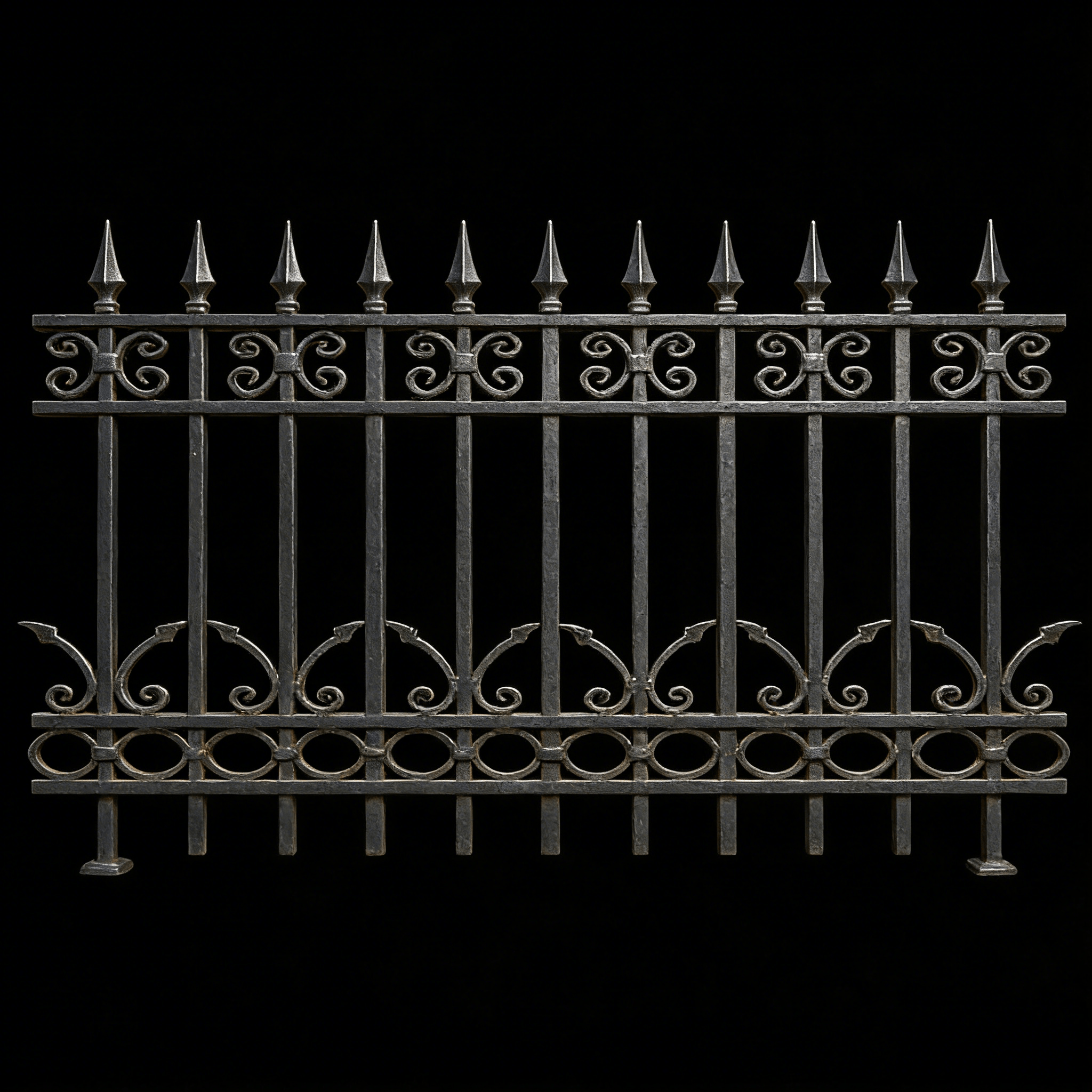 يحدد نمط Hoop and Picket سياج الحديد المطاوع التقليدي. يقوم الحرفيون لدينا بثني كل طوق يدويًا فوق اعتصام. لمسة نهائية رباعية ملحومة تكمل المظهر العتيق. على الرغم من أنه شائع في المنازل والمقابر الجنوبية، إلا أنه يناسب أيضًا الملاعب والباحات وأسطح الجدران.